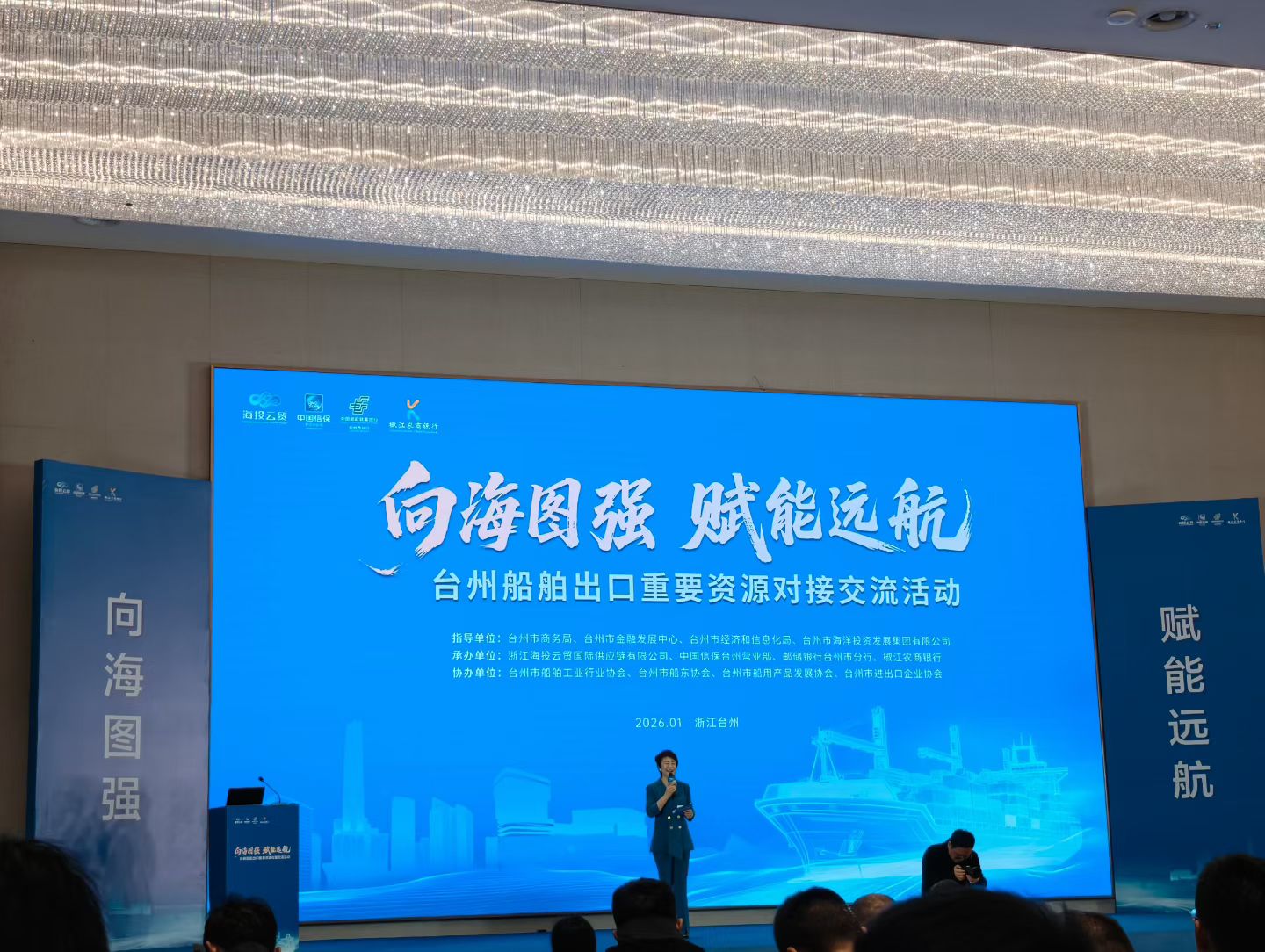 本次活动由台州市级相关单位指导,市海投集团、中国信保台州营业部等联合承办。副市长程炜博出席并致辞,强调要做好“服务提能”文章,推动金融机构建立常态化对接机制,降低企业运营风险,为产业出海提供坚实支撑,海南船东互保协会会长梁凯受邀参会。